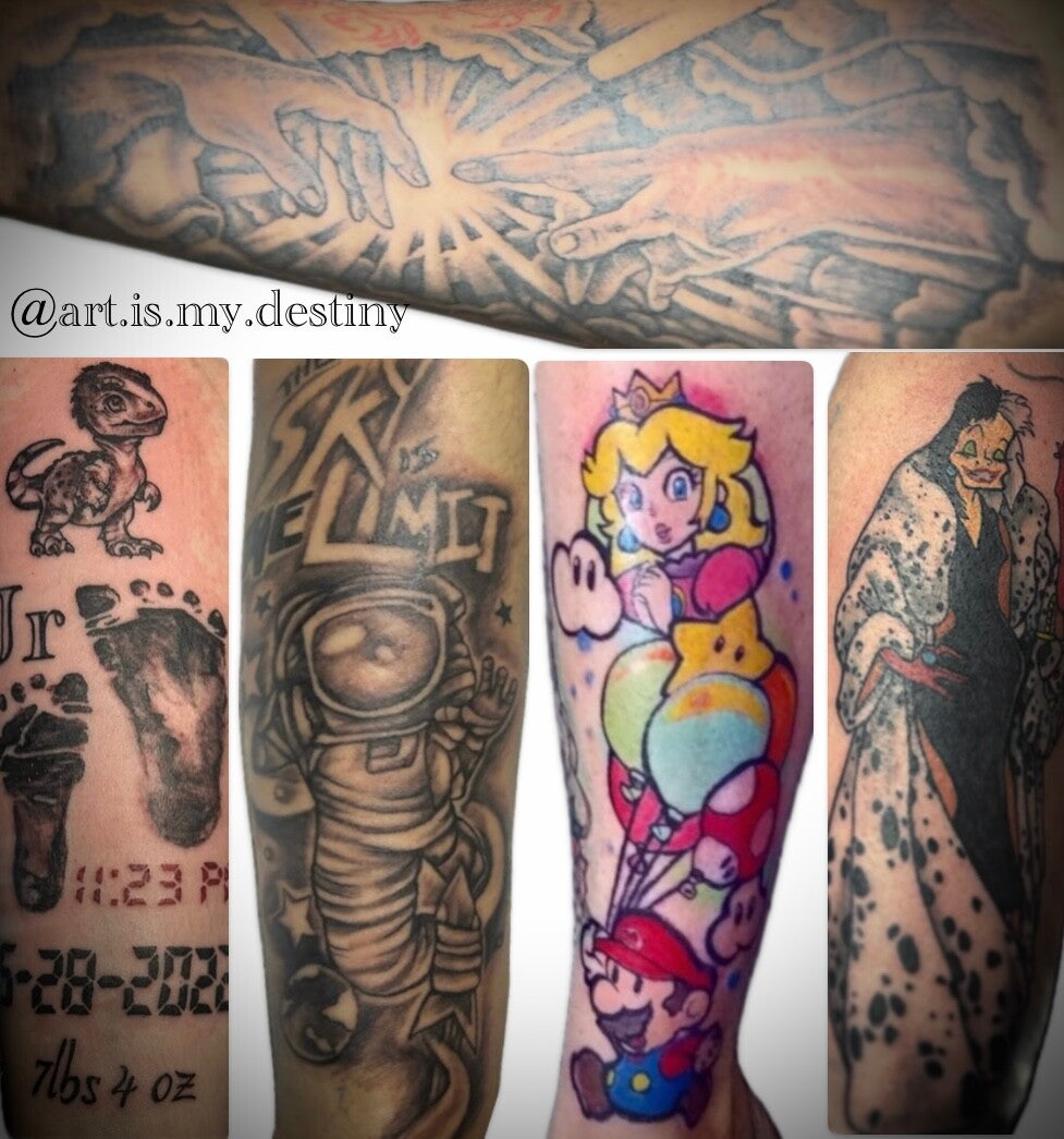 Our tattoo designs are inspired by a blend of fantasy, cartoons, and realism, all uniquely mixed together. At ARTZ by D, we tap into your personal vibes, likes, and interests to create a customized tattoo that tells your story.
